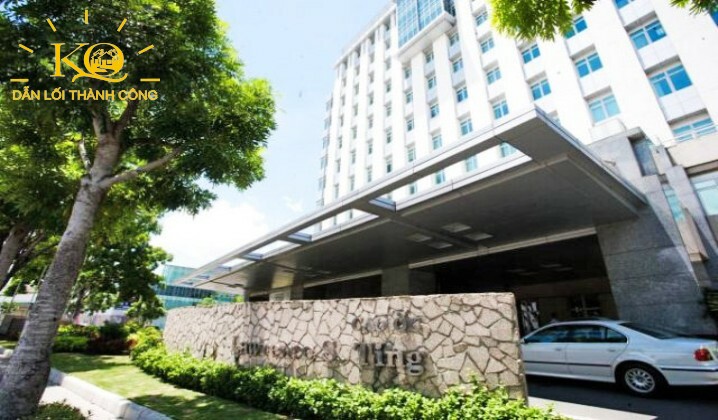 Địa ốc Kim Quang | Hình chụp phía trước tòa nhà cho thuê văn phòng quận 7 Lawrence S.ting building rộng, có thể đậu ô tô.