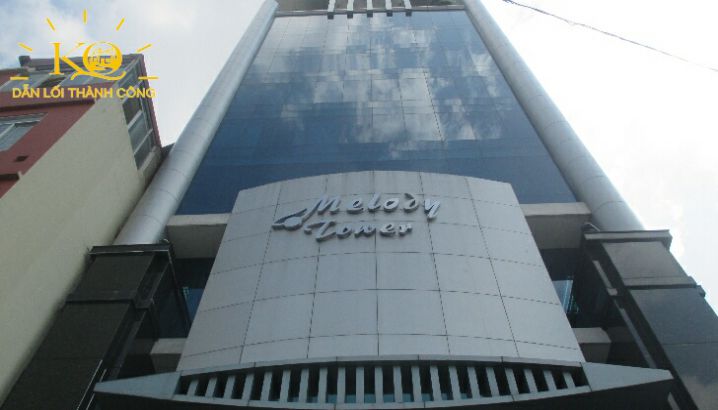 Địa ốc Kim Quang | Hình chụp bao quát tòa nhà cho thuê văn phòng quận Bình Thạnh Melody Tower có kiến trúc hiện đại, phân chia hợp lý thuận tiện để quý công ty và khách hàng đặt trụ sở, văn phòng làm việc.